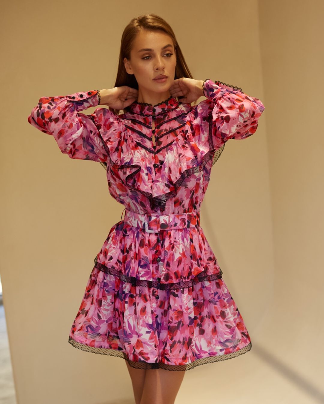 L’abito presenta una lunghezza sopra al ginocchio versatile che trasuda eleganza e stile. È realizzato in 100% Seta morbida e delicata sul corpo, che garantisce comfort e una piacevole sensazione sulla pelle. Il tessuto leggero e fresco migliora la mobilità e la praticità. L’abito vanta maniche lunghe ornate da elementi decorativi che valorizzano le spalle. Questa infusione di audacia dirige l’attenzione su questo aspetto unico del tuo look. La chiusura con bottoni dona un tocco di giocosità e disinvoltura all’abito. Il taglio dell’abito ne sottolinea la semplicità e l’estro contemporaneo, rendendolo adatto sia per le uscite casual che per le occasioni più formali. Dottato di cinta in vita.