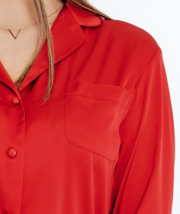 Camicia in seta a manica lunga con bottoni e taschino sul peto.